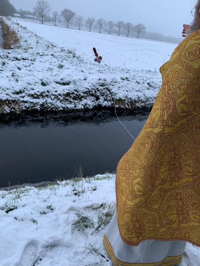 Vandaag vierden we de ‘Wijding van de wateren’, het Feest van de Heilige Epifanie (Θεοφάνεια/Theofanie). En terwijl Nederland worstelde met flinke sneeuwval en gladde wegen, slaagde een klein groepje gelovigen er toch in zijn weg naar het klooster te vinden voor de Wijding van de wateren. Bij onze ‘eigen beek’, naast het klooster, zegende onze vader Silouan de gelovigen en het water. Zalig Feest! Καλή Φώτιση!